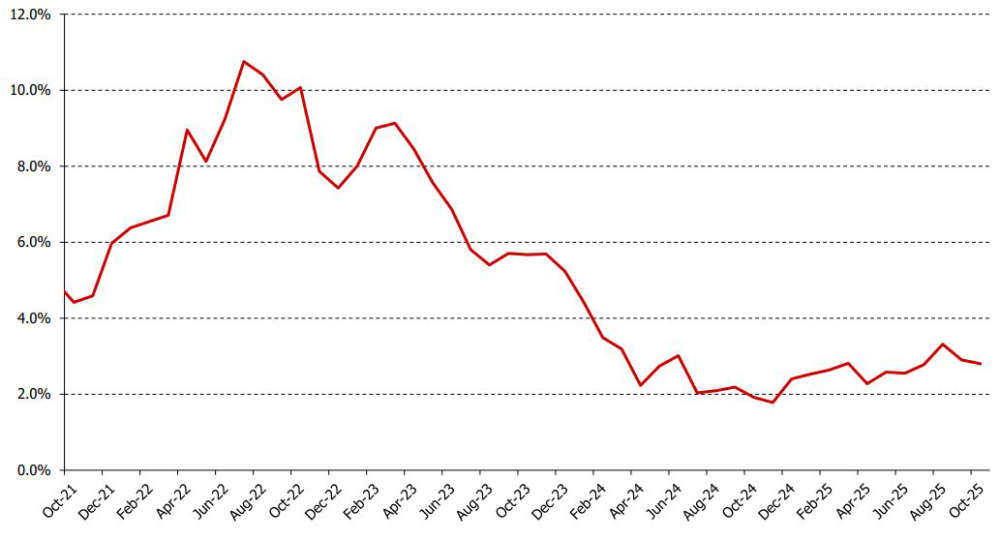 Inflation falls to 2.8 per cent