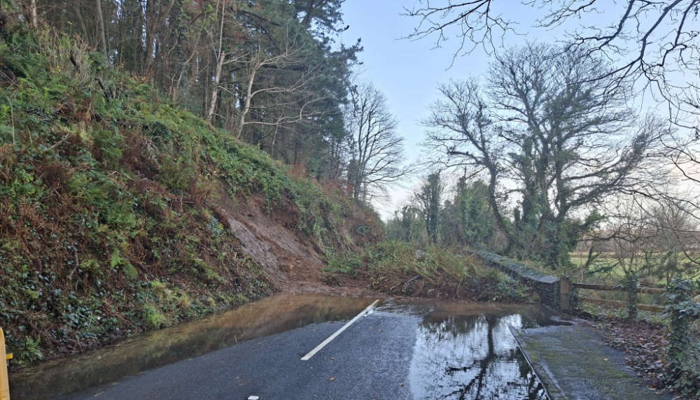 Landslip closes road in west